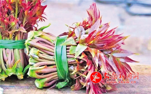 香椿 春天必吃的一道时令菜。香椿又叫做椿芽、春尖叶,香椿初发芽长叶的时候,掐香椿头拿来做成香椿炒鸡蛋吃,吃在嘴里脆嫩新鲜,味美爽口,齿颊俱芬。镇坪的香椿响当当的青嫩有味,红得发紫的叶芽,闪着点儿油光,看起来就很好吃。