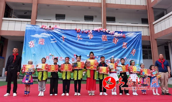 活动中,学校还表彰了获得各类优秀称号的学生,要求全体学生争做合格少先队员。东风村委会、校建施工方、爱心人士等对学校进行了捐赠,远在深圳的同维公司也为孩子们送来了节日礼物。