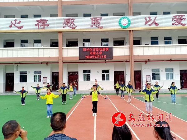 据悉,近年来,为积极落实“双减”和五项管理工作、为学生减负,同维希望小学根据学生学段特点,因地制宜、巧妙设计,调研学生兴趣爱好,打造出以“篮球操”“一分钟原地跳绳”特色的“阳光大课间”。将体育元素与艺术特色有机融合,实现了健身和游戏相统一,让同学们在提升体育技能的同时,感受到运动的快乐。