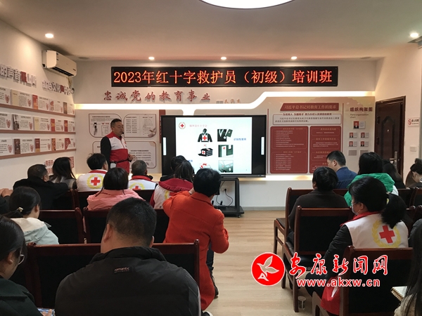 此次红十字初级救护员培训主要采用集中理论培训、技能操作演示分组练习与实操考核相结合的形式进行。现场讲解和演示了红十字运动、救护概论、现场心肺复苏术及AED(自动体外除颤仪)、创伤包扎的操作,并对学员的实操训练进行专业点评和系统指导。通过此次红十字初级救护员培训进校园活动,进一步提高教师队伍中应急知识普及率和应急处突能力,给校园安全又增设了一道安全防线,为构建和谐平安校园做出积极贡献。