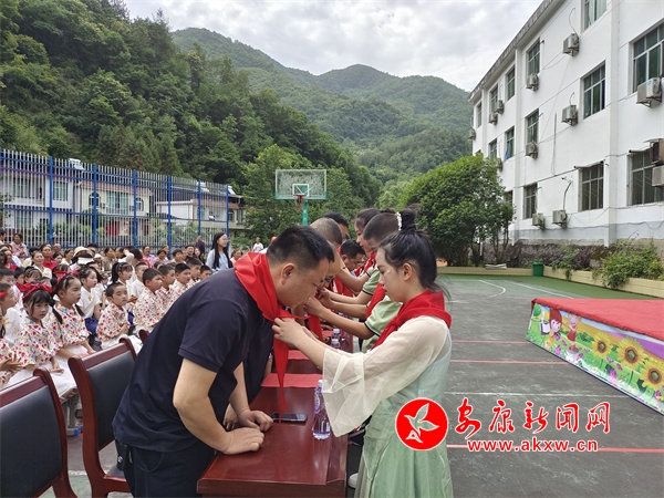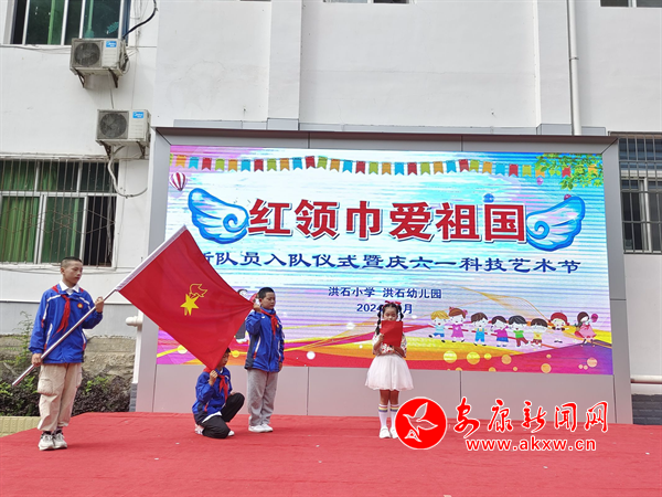 本网讯(通讯员 张萍)迎着火红的队旗,伴着嘹亮的号角,校园洋溢着节日的氛围,5月31日,镇坪县洪石小学隆重举行了“红领巾爱祖国”新队员入队仪式暨庆“六一”科技艺术节。镇坪县武装部、县民政局、县人社局、县招商局、县林业局、西安航空学院等相关领导出席此次活动,并为学校带来教育帮扶资金,给孩子们送来了篮球、书包等礼品并致以节日的慰问。