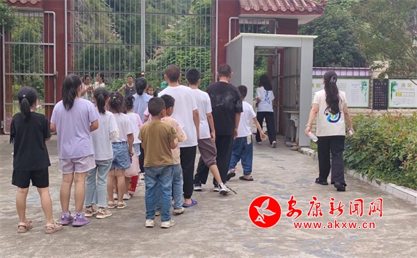 志愿者送小朋友们离校