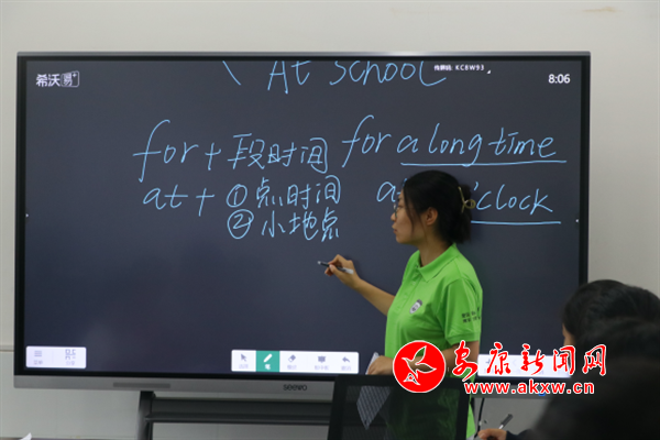 团队成员吴静精心为七年级准备了英语阅读课,通过“begoodat/dowellin”进行趣味接龙,了解学生的兴趣爱好的同时,仔细纠正学生错误发音,架起沟通的桥梁。她了解到学生缺乏英语学习方法的困境后,运用学生喜闻乐见的方法讲解具体的知识点,如用四大名著之一《水浒传》里面的人物“宋江(及时雨)”来帮助学生联想记忆,区分“intime(及时)”与“ontime”两个易混淆短语。同时渗透了“确定关键词、原文定位、选项比对”阅读做题方法及阅读选项判断技巧。英语课堂融入了文化元素,激发了学生的英语学习兴趣,反响热烈。