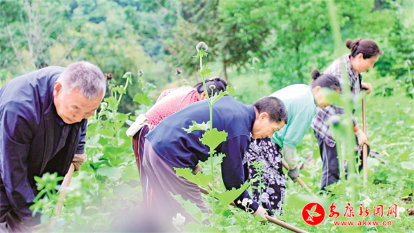 初冬时节,城关镇友谊村万亩黄连林下经济示范基地内安康月桂康养生物工程有限公司负责人焦林,正组织工人们加班加点进行黄连管护工作,现场一片热火朝天的繁忙景象。