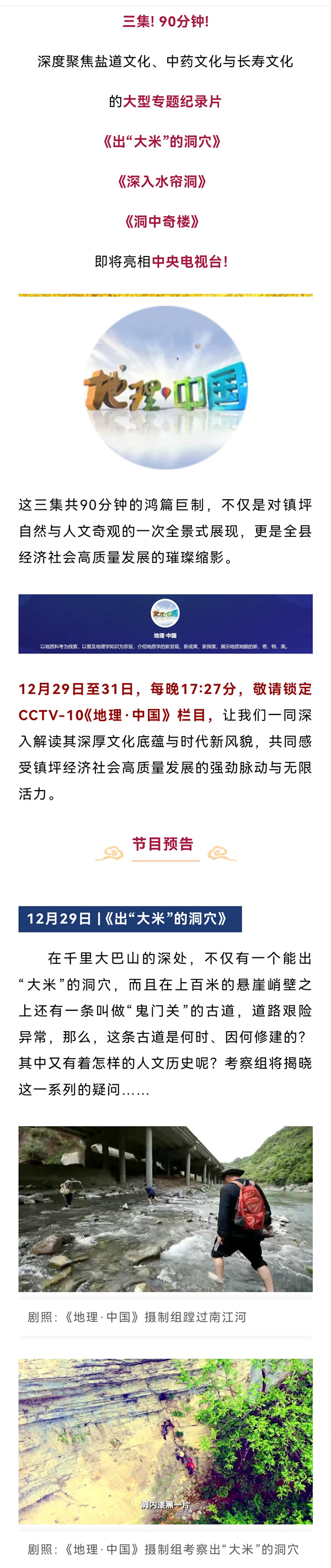 镇坪再添重头大戏 | 三集大型纪录片亮相中央电视台