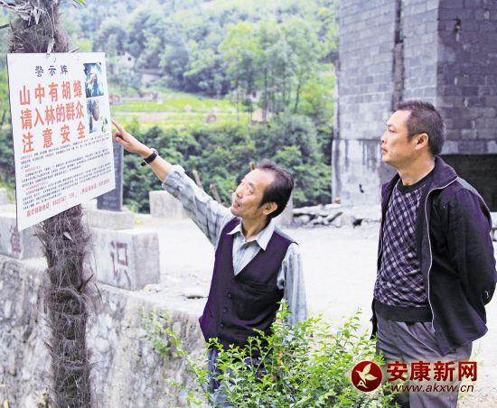 镇坪县为有效防控胡蜂伤人事故,加大胡蜂防控宣传力度,全县各镇各村在进入景区、林区的路口和人口密聚区设立警示标志,提醒群众预防胡蜂。贺孝成 摄……