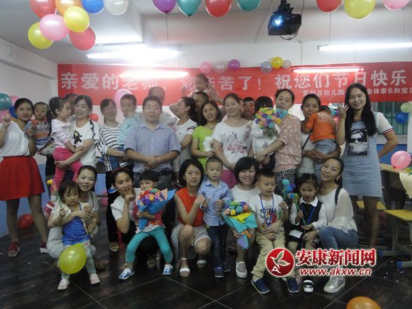 安康新闻网讯 (通讯员 肖宝)在第31个教师节即将来临之际,9月9日下午,紫阳县集成培训学校校园内欢声笑语,热闹非凡,由紫阳县幼儿园小一班全体家长和宝贝主动发起组织的“感恩老师”暨亲子互动活动在此隆重举行,大家以一种特殊的方式与老师共度佳节,并道一声:“亲爱的老师,您辛苦了,祝您节日快乐”!
