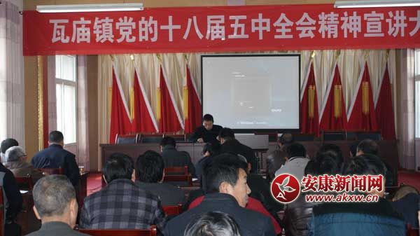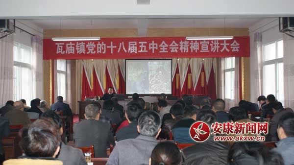安康新闻网讯 (通讯员 周洪波 张景凡) 为深入学习宣传贯彻党的十八届五中全会精神,切实把广大干部群众的思想和行动统一到全面深化改革的决策部署上来,近日,瓦庙镇召开党的十八届五中全会精神宣讲大会,镇、村全体干部及驻镇单位负责人共计85参会。