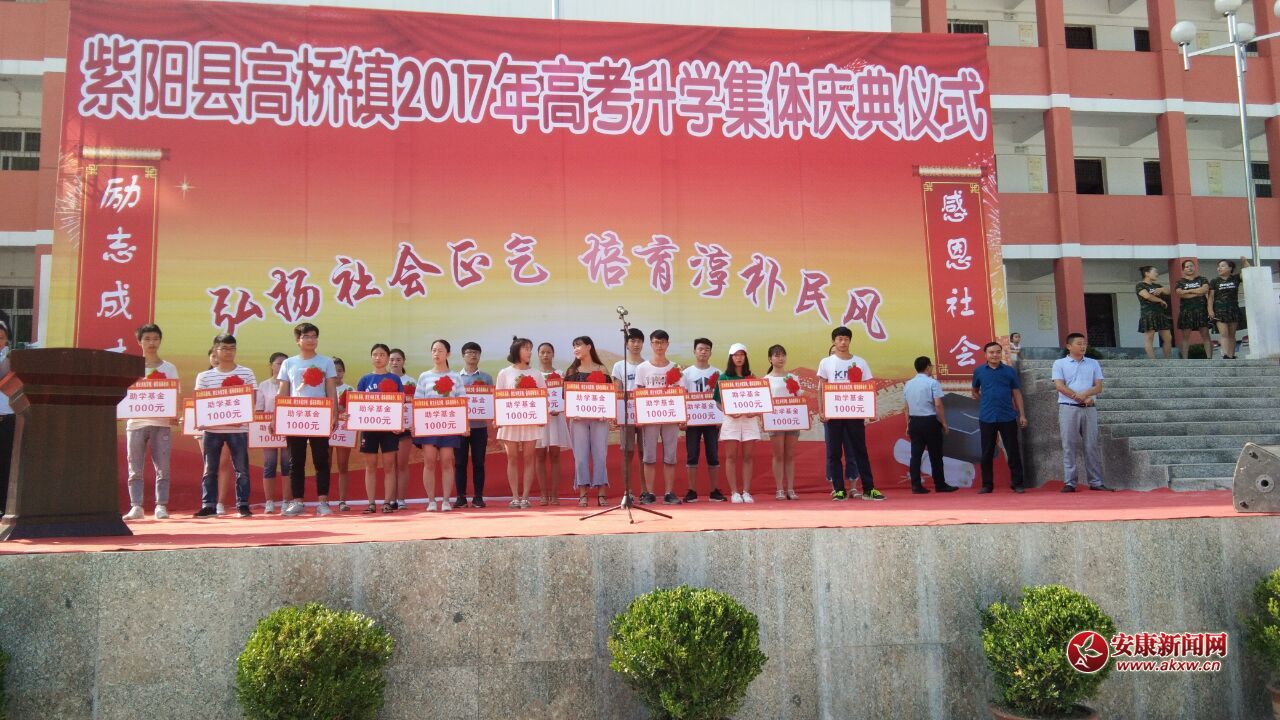 仪式上,首先由高桥镇人民政府镇长曾健同志对即将步入大学的全镇60多名准大学生们表示热烈的祝贺:恭祝辛辛学子们金榜题名出山乡,奋发求学成栋梁;接着由大学生代表和家长代表发言:感恩社会感激党,立志成才报家乡;最后准大学生们身戴大红花,笑容满面,在全场来宾雷鸣般的掌声中接受政府每人1000元的奖学金。仪式结束后,镇领导、教师、家长及准大学生们在倡导喜事新办签名榜上进行了亲笔签名以誓遵从践行新民风建设的承诺和决心。此次活动旨在推进新民风建设,杜绝红白喜事大操大办、狠杀人情歪风、推动移风易俗,树立乡风文明。
