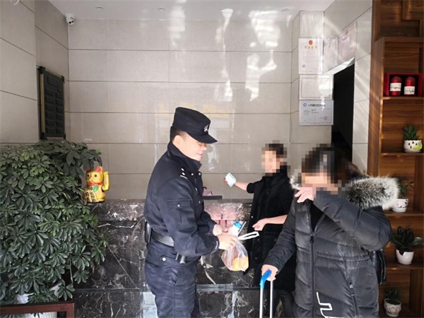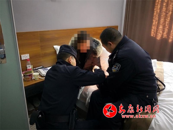 通过紧张有序的工作,很快查明该女子在县城某宾馆,民警快速前往,在该宾馆找到正在自残的湖南女子涂某,此时涂某双手腕部均被锐器划伤,民警通过大量劝说工作,并买来药物,对涂某的伤口进行包扎,看到忙得满头大汗的民警,涂某逐渐恢复理智,放弃轻生。