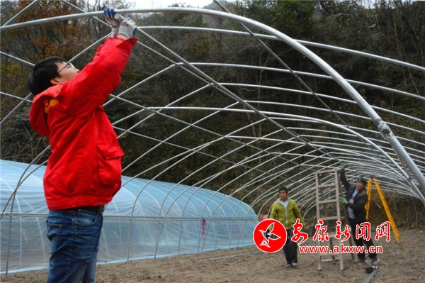 11月27日,笔者在蔬菜水果种植基地看到,扶贫队员何正义正带领十多位群众搭建大棚。何正义介绍,在完善销售平台的同时,燎原村也在迅速培育增收产业,新建五个大棚将用来种植冬枣的。