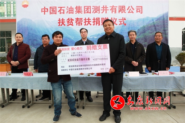 出人,出力,出智,还要大笔出钱。经过中国石油集团审批,测井公司为燎原村申请了227.1万元帮扶资金。2018年11月22日,中国石油集团测井有限公司党委书记、副总经理金明权亲手将这一个扶贫“大礼包”送到燎原村。