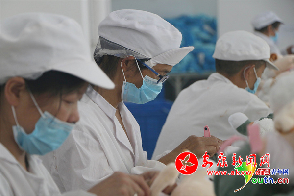 玩具厂还吸纳了11名男性村民投身毛绒玩具生产加工。中国青年网记者 张博 摄