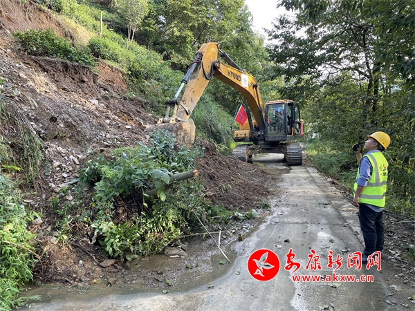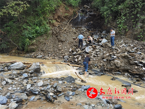 同时,新桃村组织青年党员、群众百姓等科学开展生产自救,进行房屋清理、道路抢通、疏通清淤、险情排除等工作。为保障村民正常用水,村委会安排组织运水大军,修复受损管道,修缮蓄水池;挖土机挖通因严重滑坡而造成的受损路段后,群众自发带着锄头和铲子,挖出一条简易小道,方便救灾人员通行。