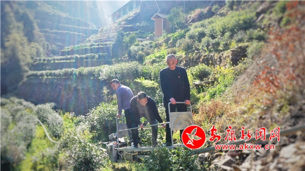 “引进这个东西算是给我们的茶园管理工作帮了大忙了,我们这茶园大多都是山地,以前农忙运工具、肥料上山只靠马驮人背的,耗时耗力还增加了人工成本,现在这个茶园轻轨一次建成终身受用,五六百斤的东西放上去,说走就走说停就停,大大提高了高山茶园的管理效率。”大连村支部书记谢立安介绍到。