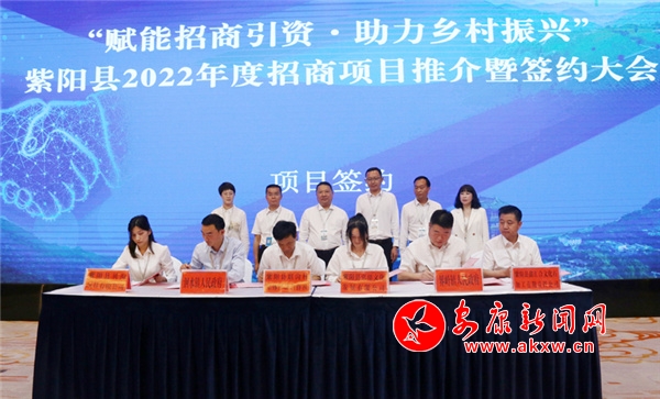 本网讯(通讯员 陈刚)为贯彻落实全省招商引资工作现场会会议精神,5月13日,紫阳县举行“赋能招商引资•助力乡村振兴”招商项目推介暨签约大会,这是该县在安康市2022年开放招商大会暨产业链链长制推进会召开后、常态化疫情防控之下,组织开展的首场大型招商引资活动。