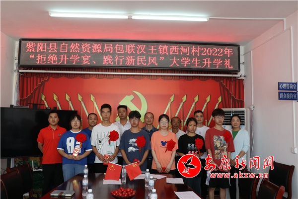 活动后该局联合汉王镇政府、村党支部,以“拒绝升学宴、践行新民风”为主题开展“主题党日”活动,为西河村准6名大学生举办集体升学礼,该活动得到了陕西核工业工程勘察院有限公司和紫阳县凯翔建筑工程有限公司共计2万元爱心捐助,主要用于特殊家庭帮扶、新入学大学生奖励和西河村人居环境整治改善。通过多途径、多形式解决群众“急、难、愁、盼”问题,共同助力乡村振兴工作。