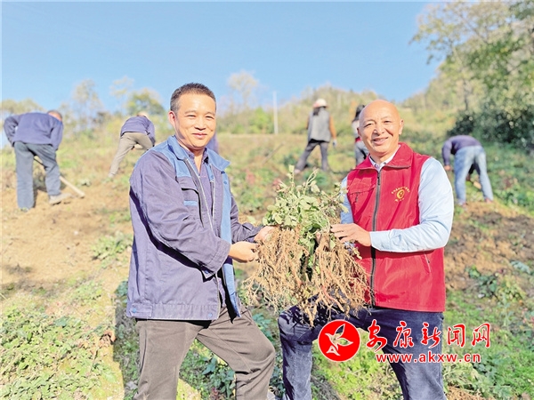 “真的太谢谢你们了,走,走,走,去我屋里头喝口水,下午我炒两个菜,喝两杯再回去。”金汉忠热情地招呼着前来帮他采收药材的志愿者。“今天就不了,趁着天气好,公司基地里的丹参也要赶紧挖,改天来。”说话间,远教技术员余小松带着队伍背着工具往公司药材种植基地赶去。