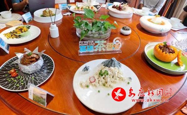 宴席两道小吃是开花酥,茶香饼。凉菜10个五荤五素,其中凉拌翠芽、踏雪寻春、银针献宝、脆皮茶叶、茶香小河虾、碳烤牛肉6个菜品有茶元素,双色凉粉、卤鸭掌、长寿金钱肚、卤猪蹄是地方卤菜中的精品菜肴;热菜14个,食材讲究,鸡、鱼、牛、羊、猪应有尽有。热菜中有茶元素的菜品:香酥鸡、栗香肉、红茶牛蹄筋、茶香鲟龙等4个,还有羔羊萝卜煲、四喜丸子、水晶虾仁、深山春笋、春色满园、秦巴山珍、白玉翡翠、百莲好合、步步高升、糯米排骨等八荤六素。汤类一个茶香乳鸽汤,主食为茶香面。该宴席菜品原材料来主要源于紫阳县境内,50%以上原材料经检验达到富硒产品标准。宴席菜品食材原料符合绿色、健康、安全标准,地域特色传统技艺和“茶元素”置于宴席菜品中;宴席菜品无高糖、高盐、高脂肪,绿色健康。
