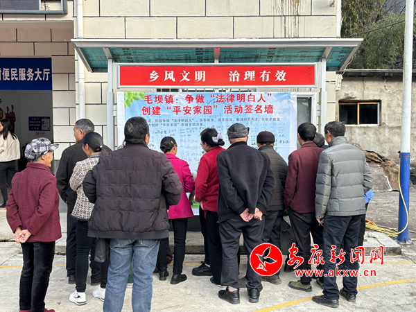 “一面签到墙,群众幸福梦。小小一个签名,不仅是群众对平安家园建设的支持,更展现了毛坝人民创造幸福美好生活的信心。”毛坝司法所负责人看到“争当法律明白人,创建平安家园”签名墙上密密麻麻的签名后感慨道。