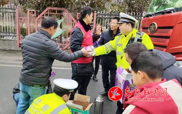 2月20日晚,紫阳县又迎来了一次降雪天气,气温骤降,辖区路面迅速积雪结冰。为最大限度预防和减少交通事故发生,确保群众出行安全和道路平安畅通,紫阳县公安局交警大队统一指挥部署,迅速安排所有警力上路开展交通巡查,加大路面管控力度,强化指挥疏导,确保辖区道路交通秩序的安全、有序、畅通。2月21日11时许,因滞留车辆较多,交警大队联合高速收费站工作人员向滞留附近的司乘人员“送来热水、泡面”让各位驾乘人员感受到紫阳交警的浓浓暖意,舒缓驾乘人员旅途滞留的焦虑情绪,同时提醒驾驶人及时关注天气情况和路况信息,确保行车安全。