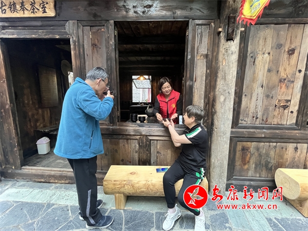 “三月的那个三来,上茶那个山呀......”行走在古镇老街,一首悠扬悦耳的歌声扑面而来,走进古镇奉茶室,侯大姐满怀激情,声音高亢地为游客们演唱着紫阳民歌《三月三上茶山》,这已经是她今天早上接待的第三批游客了,但丝毫看不出她脸上的倦怠。街道社区居民侯服琴,秉着对民歌文化和社区工作的热爱,长期致力于古镇奉茶室义务接待工作,为游客演唱传统紫阳民歌。“现在来焕古旅游的人越来越多,紫阳民歌是紫阳的传统文化,我们有义务传承和发扬它,让更多外地游客们都知道紫阳民歌、爱上紫阳民歌,爱上焕古这个好地方。”侯服琴乐呵呵地说道。在今年紫阳县“茶山放歌 声动紫阳”民歌赛暨陕南民歌选拔比赛中,侯服琴更是用高亢嘹亮、动听淳朴的歌声斩获了二等奖的优异成绩。