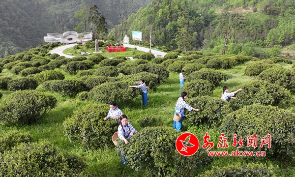 本网讯(通讯员 毛润)连日来,随着几场春雨的滋润,生长在紫阳县双桥镇莲花村的一片高海拔古茶树群吐露新芽焕发新生。只见身着茶服的采茶姑娘们在茶园负责人的统一调度下,腰系茶篓,爬上两米高的木梯用灵巧的双手在茶芽之上翻飞来回。