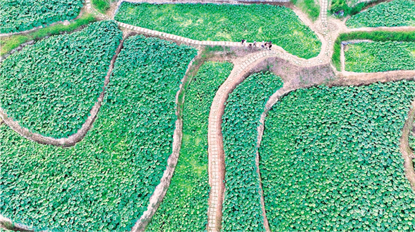蒿坪镇改革村“荷”你“藕”遇农文旅园区夏日荷叶,一片宜人景色。陈梅 摄