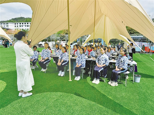 紫阳小学研学活动聆听茶艺课程。刘姝含 摄