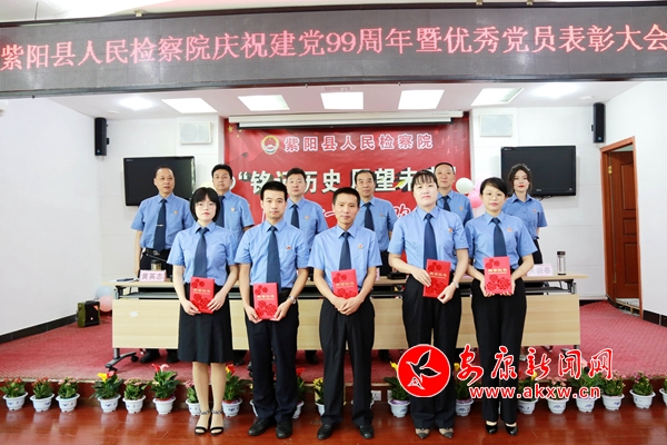 本网讯 (通讯员 汪涛)6月29日,安康市紫阳县人民检察院六楼会议室张灯结彩气氛热烈。为庆祝中国共产党成立99周年,该院开展了“庆祝建党99周年暨优秀党员表彰……