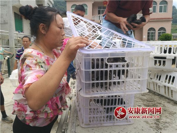 紫阳县红椿镇社区工厂免费向贫困户发放鸡苗