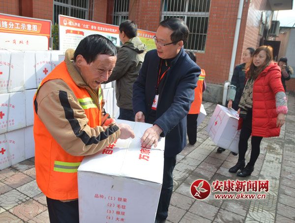 安康新闻网讯(通讯员 张小红 周洪波)时值元宵佳节,紫阳县红十字会为城关镇和向阳镇90名保洁员每人准备了一个红十字大礼包,为他们送上了新春礼物,祝福他们……