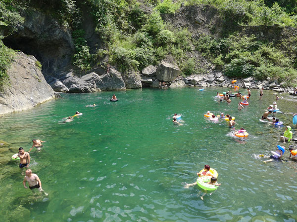 随着气温的升高和炎炎夏日的到来,紫阳县联合镇盘厢河每天有络绎不绝的游客前来避暑戏水纳凉,河水里如同“下饺子”一般,河水里全是密密麻麻的人群在游动。(通……