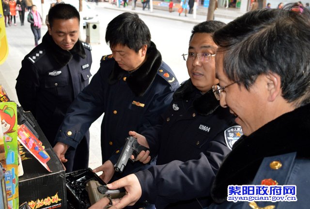 为进一步加强儿童玩具销售市场管理,近日,紫阳县工商局、公安局联合对辖区儿童玩具市场仿真枪进行专项检查,收缴仿真枪20余支,有效规范了玩具销售市场秩序。执……