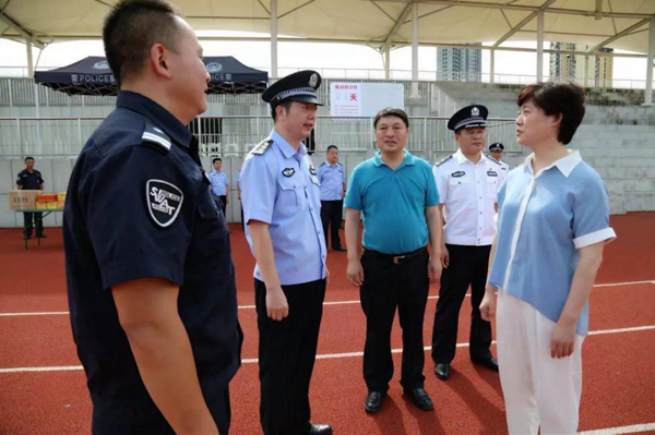 赵璟指出,烈日高温下坚守工作岗位,体现了公安队伍的责任担当,要继续发扬这种不怕吃苦、连续作战的精神,全力抓好高温天气下安保维稳各项任务,持续巩固城市交通秩序整治成效。要进一步加强和改进关爱民警工作,科学安排勤务,做好防暑降温,最大努力为民警创造良好的工作环境。她强调,各级公安机关要紧扣大庆安保维稳主题主线,扎实抓好当前防风险、保安全、护稳定各项措施的落实,全力维护社会大局稳定,以优异成绩向新中国70华诞献礼。