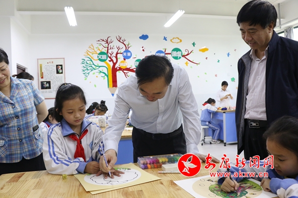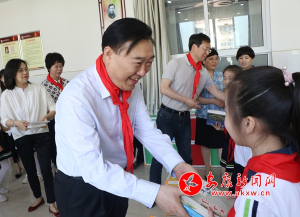 在汉滨小学,王刚一行实地了解学校常态化疫情防控、基础设施建设、师资队伍培养等情况,走进教室观摩少先队员们精心准备的“习爷爷教导记心间 争做新时代好少年”主题队会,并不时拍手称赞。在果园小学,王刚来到美术、音乐社团,近距离欣赏孩子们开展的美术创作和才艺表演,与他们一起画画、唱儿歌。在市一小高新校区,王刚来到劳技教室与孩子们一起做手工,到校监控室察看校园安全管护等情况,深入模拟法庭观看孩子们组织的模拟庭审。每到一处,王刚都与孩子们热情互动,并送上书籍等慰问品和节日祝福。