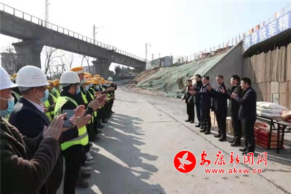 在北环线施工现场,高晶华指出,北环线建设是拉大城市骨架、提升通行顺捷、疏解城市压力的控制性工程。项目开工以来,大家心怀筑路梦,不畏艰与辛,主体工程推进顺利,市委、市政府和全市人民对你们表示敬重和感谢。希望大家抢抓时机,排除困难,保障质量,安全施工,确保如期建成通车。