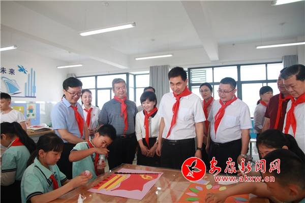 在高新一小,郭青先后走进少先队活动室和手工课堂,详细了解学校软硬件建设、教育教学活动开展等情况,认真倾听学生代表“党建带队建,红色故事我来讲”发言,和同学们一道完成“战斗英雄杨根思”剪纸版画,并祝同学们节日快乐。他说,少年儿童是国家的未来和民族的希望,同学们要树立远大理想,珍惜美好时光,勤学上进、强健体魄、锤炼意志,努力做德智体美劳全面发展的新时代好少年。各级各部门和学校要更加关心关爱少年儿童,带着感情、带着责任抓好教育,为少年儿童茁壮成长创造有利条件;当前要切实抓好常态化疫情防控,确保孩子们生命安全和身体健康。