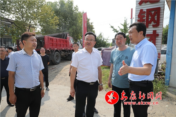 刘建平一行实地在枣园路防洪闸门、城东农贸市场、红卫桥、宝业农贸市场等地,查看周边环境卫生整治及基础设施改善等情况,现场发现问题,研究解决措施,交办任务,推动落实。