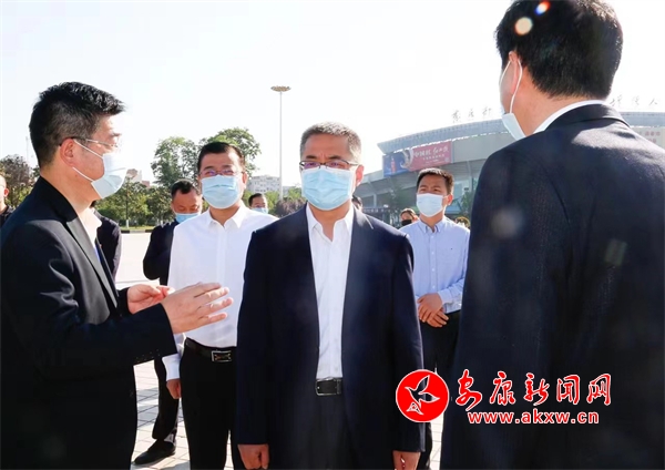 王浩(左三)一行在金州广场核酸检测采样点检查中心城区重点人群全员核酸检测开展情况
