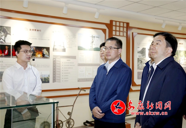 王浩(右二)在筒车湾镇海棠园村村史馆调研