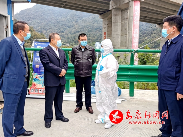 市长武文罡(左二)在安岚高速岚皋收费站检查疫情防控措施落实情况
