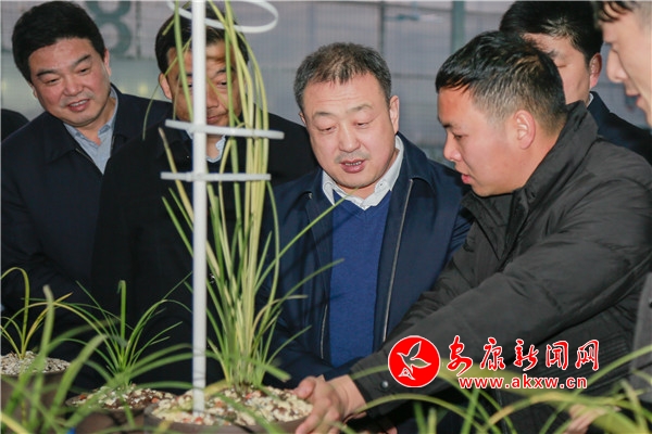 武文罡(左三)在宁陕县城关镇华严村花卉种养基地调研产业发展情况