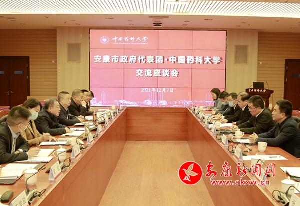 武文罡一行先后参观考察了中国药科大学药用植物园、药学博物馆。在随后召开的座谈会上,武文罡代表市委、市政府向中国药科大学长期以来支持安康特别是镇坪经济社会发展表示衷心感谢。他表示,中国药科大学与安康自2012年结缘,近十年先后派出5名专家教授、3名专业人才在镇坪县挂职帮扶和担任驻村扶贫第一书记,为安康全域脱贫摘帽作出了巨大贡献,希望中国药科大学继续关注安康、关心镇坪,在助力安康实施乡村振兴战略,打造中医药产业集群,推进医药产业振兴发展等方面进一步提供科研、人才支持。