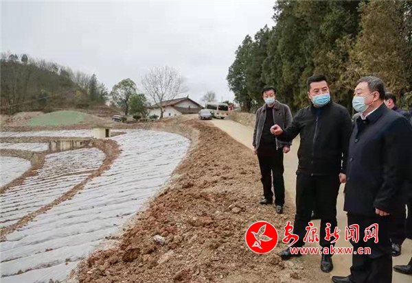 (武文罡在汉滨区瀛湖镇郭家河村调研高标准农田建设情况)