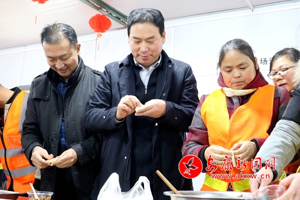 随后,赵俊民来到项目部职工食堂,与大家一起包饺子、庆佳节。欢声笑语中,大家一边享受美食,一边与家人视频连线,大家纷纷表示,一定将市领导的关怀和问候转化为加快建设的动力,为早日实现安康人民的蓝天梦贡献力量。