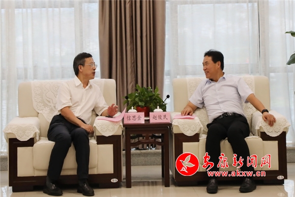 本网讯(记者 艾蓓)8月14日下午,市长赵俊民会见武汉理工大学党委书记信思金一行,双方围绕深化校地合作、助力脱贫攻坚等事宜座谈交流。武汉理工大学党委副书记王乾坤,市政府秘书长陈伍文,市级有关部门和石泉县有关负责同志、武汉理工大学驻安挂职扶贫干部参加会见。