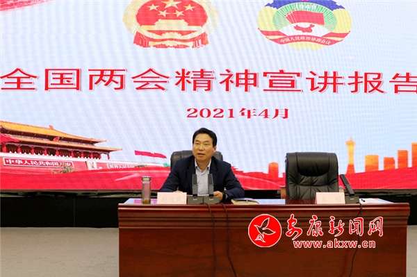 本网讯(记者 艾蓓)4月16日,我市召开全国两会精神宣讲报告会。全国人大代表、省委宣讲团成员、市长赵俊民作全国两会精神专题宣讲报告。市委副书记王刚主持报告会。