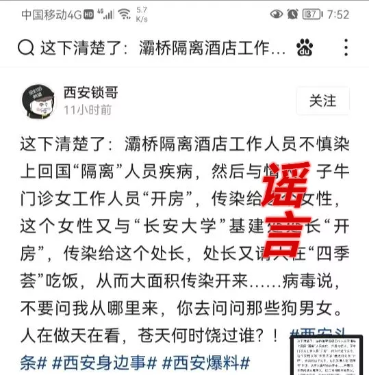 谣言信息截图: