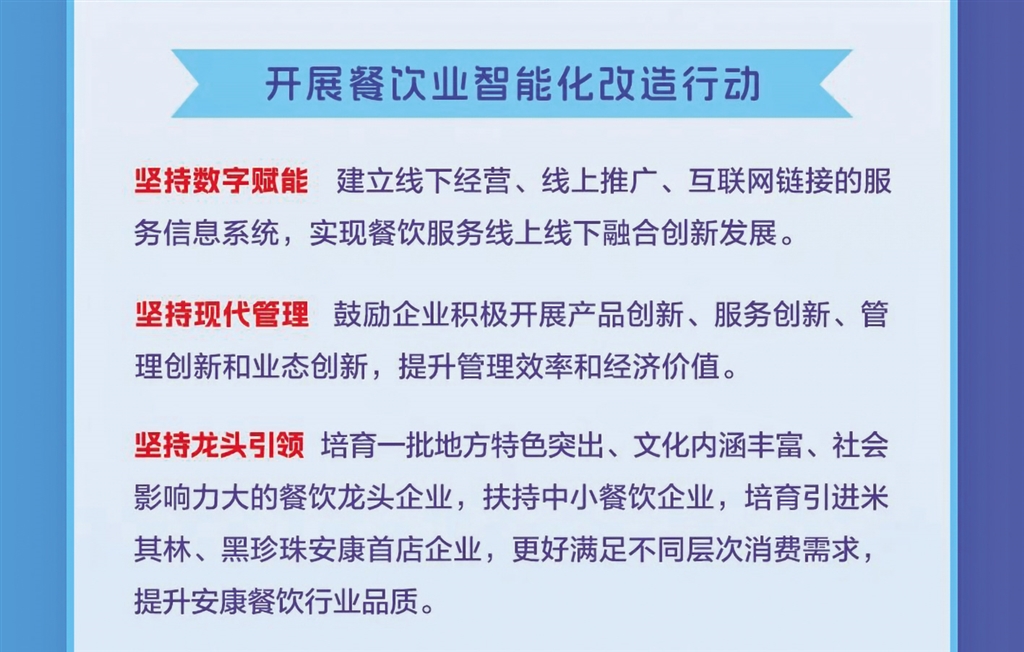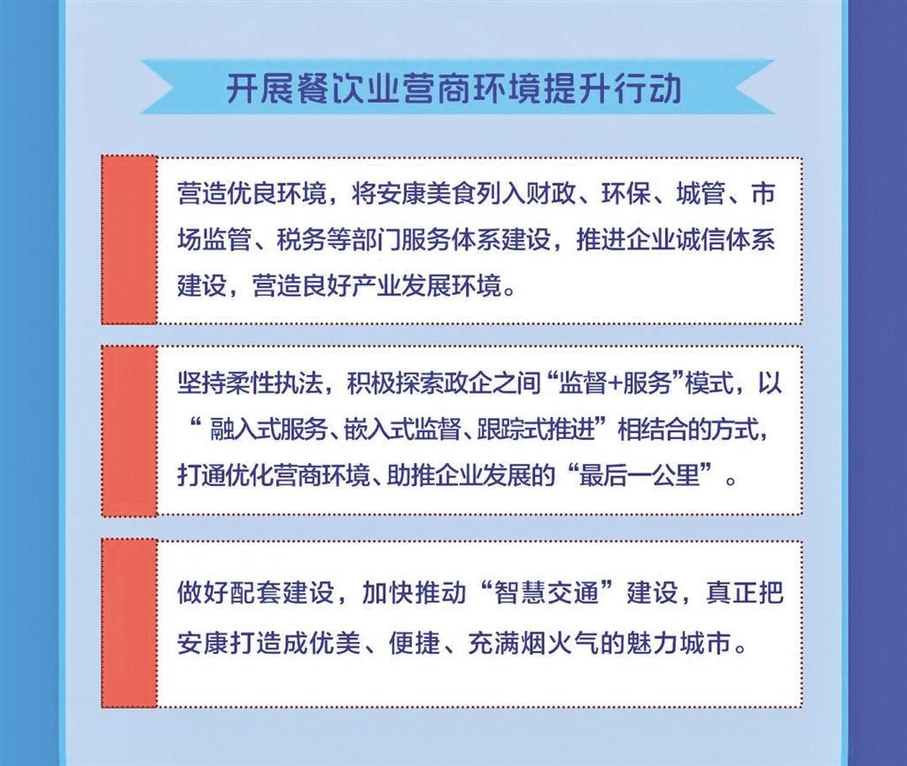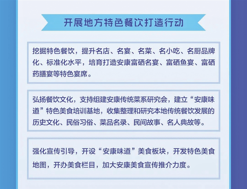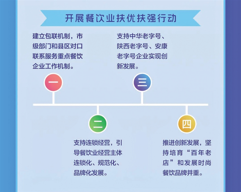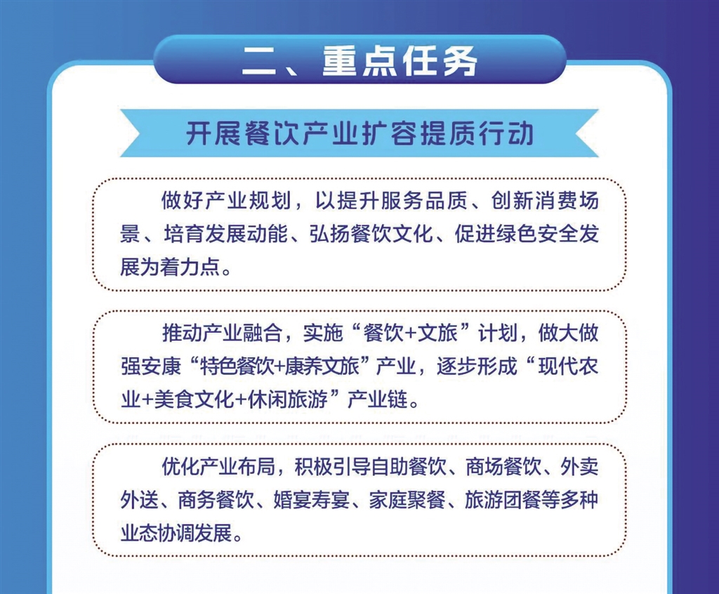 日前,安康市商务局等11部门联合发布《关于进一步推进全市餐饮业高质量发展的实施意见》,本期带您一图读懂其重点任务。